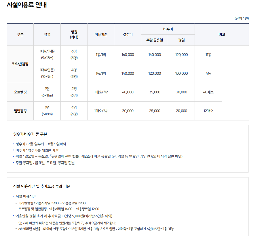 | 카라반 6인용 | 120,000원 | 140,000원 | 160,000원 |