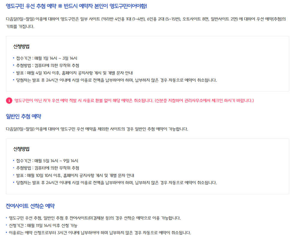 | 영도구민 우선 추첨 | 매월 1일 14시 ~ 3일 14시 | 구민만 신청 가능 |