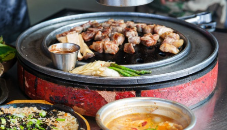 불판에는 특수한 숯이 들어가는데요, 타오를 때부터 구수한 향이 퍼져 식욕을 폭발시켜요.