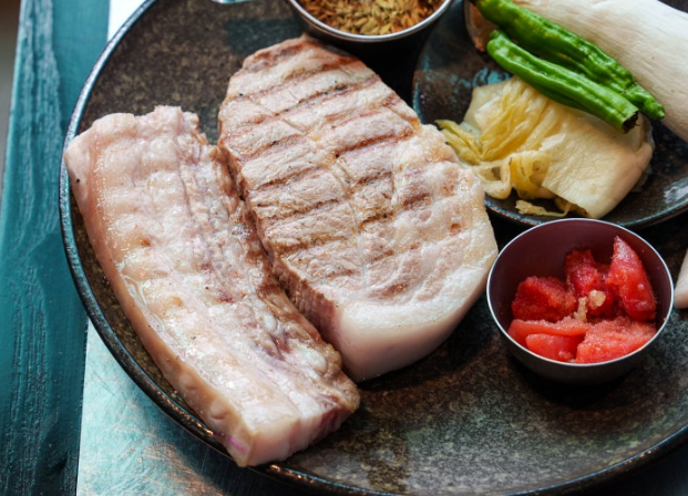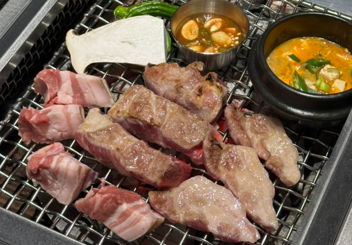 삼겹살과 목살 두 가지 부위가 함께 제공되어 식감의 다양함도 즐길 수 있고요,