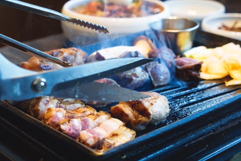 고기가 초벌되어 나와서 자리에선 살짝만 익히면 끝.