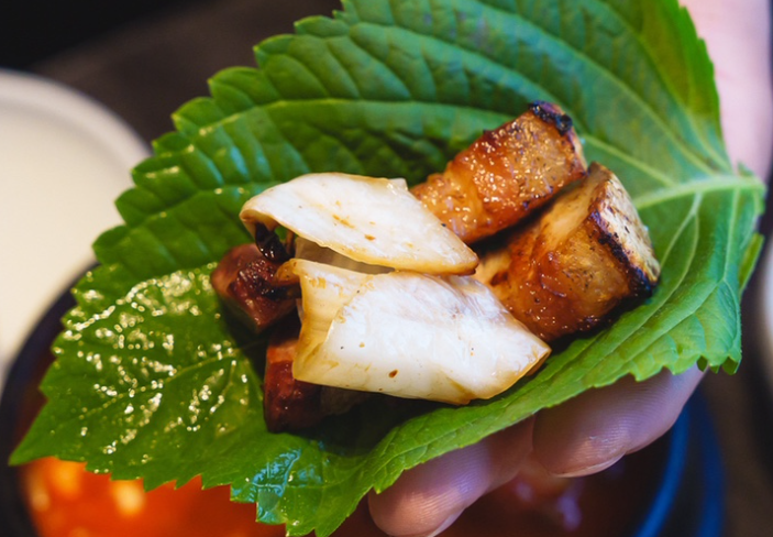 고사리, 깻잎, 무생채 등 고기와 잘 어울리는 반찬에 싸 먹으면 식감과 향이 조화롭게 어우러지고,