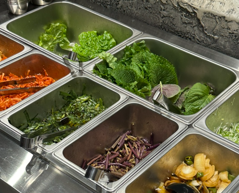 고사리, 열무김치, 샐러드 등 고기와 찰떡궁합 반찬들이 모두 준비되어 있어서 취향대로 골라 즐길 수 있답니다.