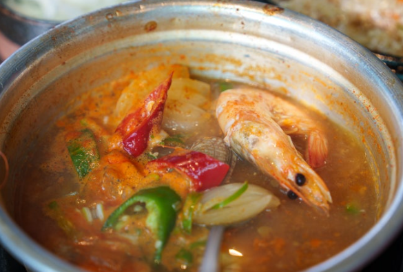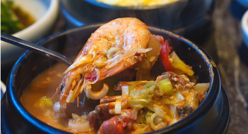 마무리는 꽃게, 새우가 듬뿍 들어간 해물된장찌개.