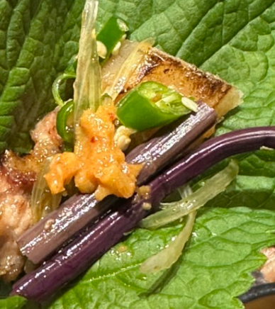 고기의 부위도 푸짐한 구성인데요. 오겹살은 쫄깃하고 고소하고, 목살은 살코기와 지방의 황금 비율 덕에 씹을수록 진한 고기 맛이 올라와요.