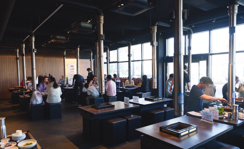 내부는 군더더기 없이 딱 깔끔. 테이블 간 간격도 여유로워서 단체로 와도 부담 없고, 반찬은 셀프바 형식으로 마음껏 가져다 먹을 수 있어요. 고기 맛에 반찬까지 풍성한 한상이 완성됩니다.