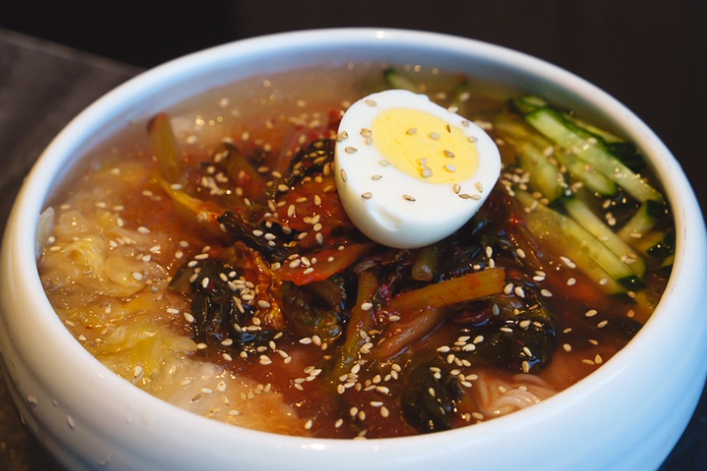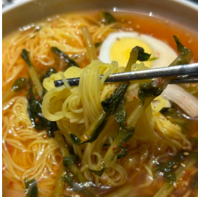계란찜은 봉긋하게 솟아올라 따뜻함이 오래 유지되고, 열무국수는 쫄깃한 면과 시원한 육수가 고기 사이사이 입맛을 다시 살려주는 역할을 해줘요.