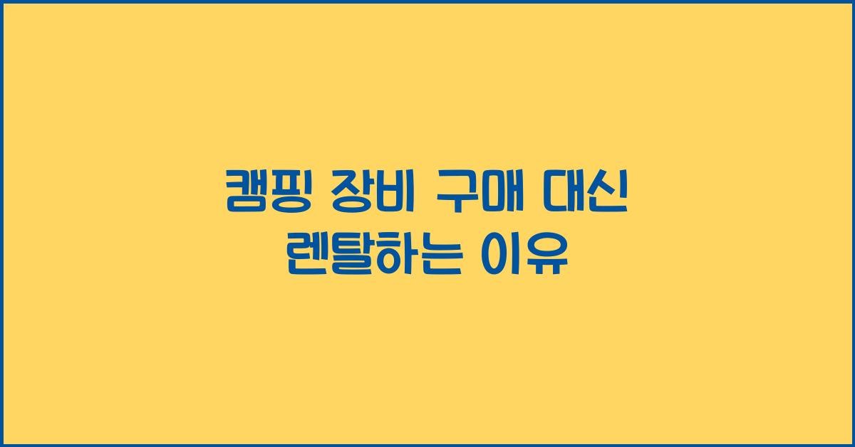 💸 캠핑 장비 구매 vs 렌탈 비교표